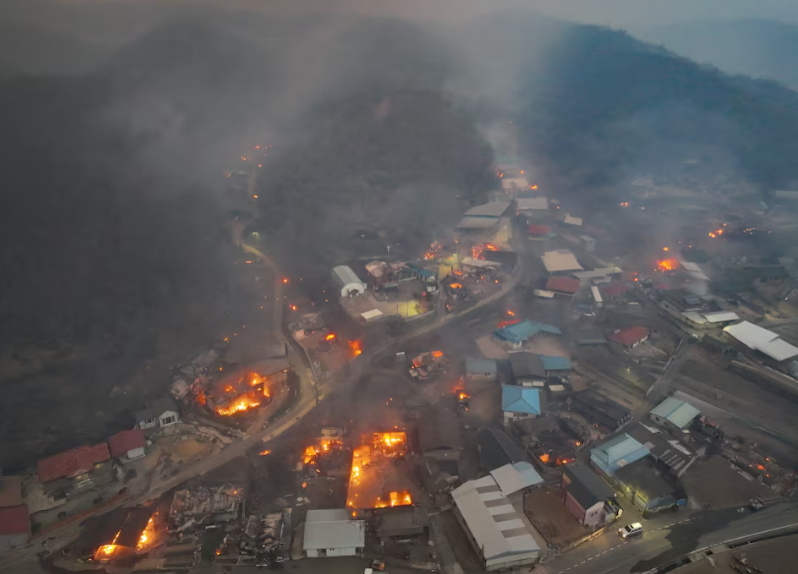 Që nga e mërkura në orën 5 të mëngjesit, 14 persona kishin vdekur në një zjarr që filloi në qarkun Uiseong, ndërsa katër vdekje të tjera ishin të lidhura me një tjetër zjarr në qarkun Sancheong, sipas Ministrisë së Sigurisë.