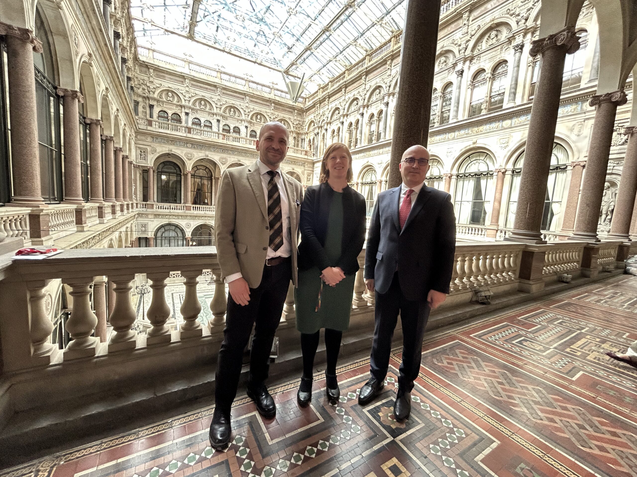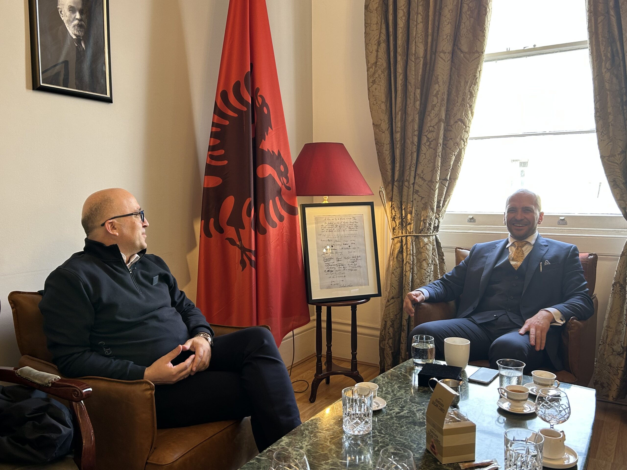 Inspektori i Lartë i Drejtësisë z. Artur Metani dhe delegacioni i ILD-së u mikpritën në ambasadën e Shqipërisë në Lodër nga ambasadori z. Uran Ferizi. Pasi falenderoi ambasadorin për mbështetjen në organizimin e kësaj vizite, z.Metani u informua nga z.Ferizi mbi punën e Ambasadës sonë në mbrojtje të interesave të Shqipërisë e shqiptarëve që jetojnë në Mbretërinë e Bashkuar, si dhe kontributin britanik për përparimin e vendit tonë.