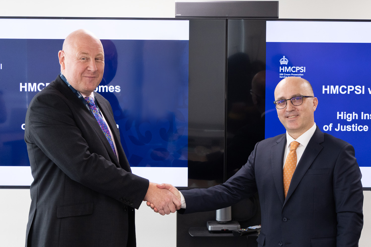 Në Inspektoratin e Shërbimit të Prokurorisë së Kurorës së Madhërisë së Tij, Inspektori i Lartë i Drejtësisë u mikprit nga Kryeinspektori z. Anthony Rogers.
