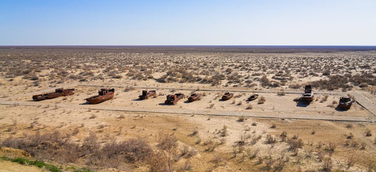 Deri në vitet 1960, Deti Aral ishte një nga rezervuarët më të mëdhenj të brendshëm të ujit në botë. Gjatë shtatë dekadave, liqeni u nda fillimisht në liqene më të vegjël, derisa pjesa më e madhe e sipërfaqes së tij ishte avulluar plotësisht, duke lënë pas një shkretëtirë.