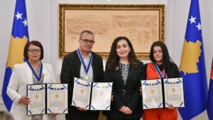 Presidentja e Kosovws, Vjosa Osmani, dekoroi me medaljen “Nderi i Republikës së Kosovës” të mbijetuarit e dhunës seksuale gjatë luftës.