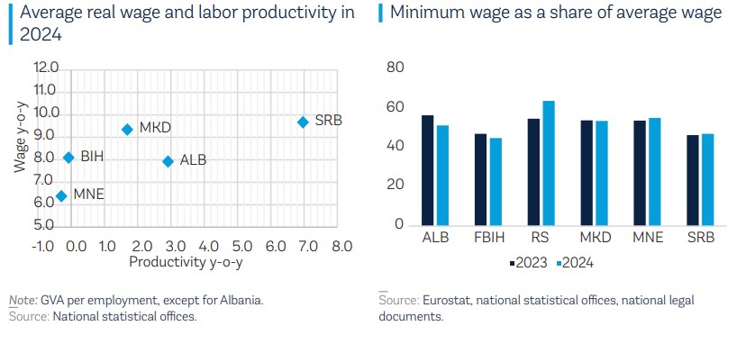 Bosnja dhe Hercegovina kishte diferencën më të madhe paga-produktivitet, ndërsa Serbia më të ulëtën, pasi rritja e pagave shoqërua me një rritje të ngjashme të produktivitetit prej 7 për qind, sipas një analize të fundit të Bankës Botërore në raportin e fundit ekonomik për 6 vendet e Ballkanit Perëndimor.