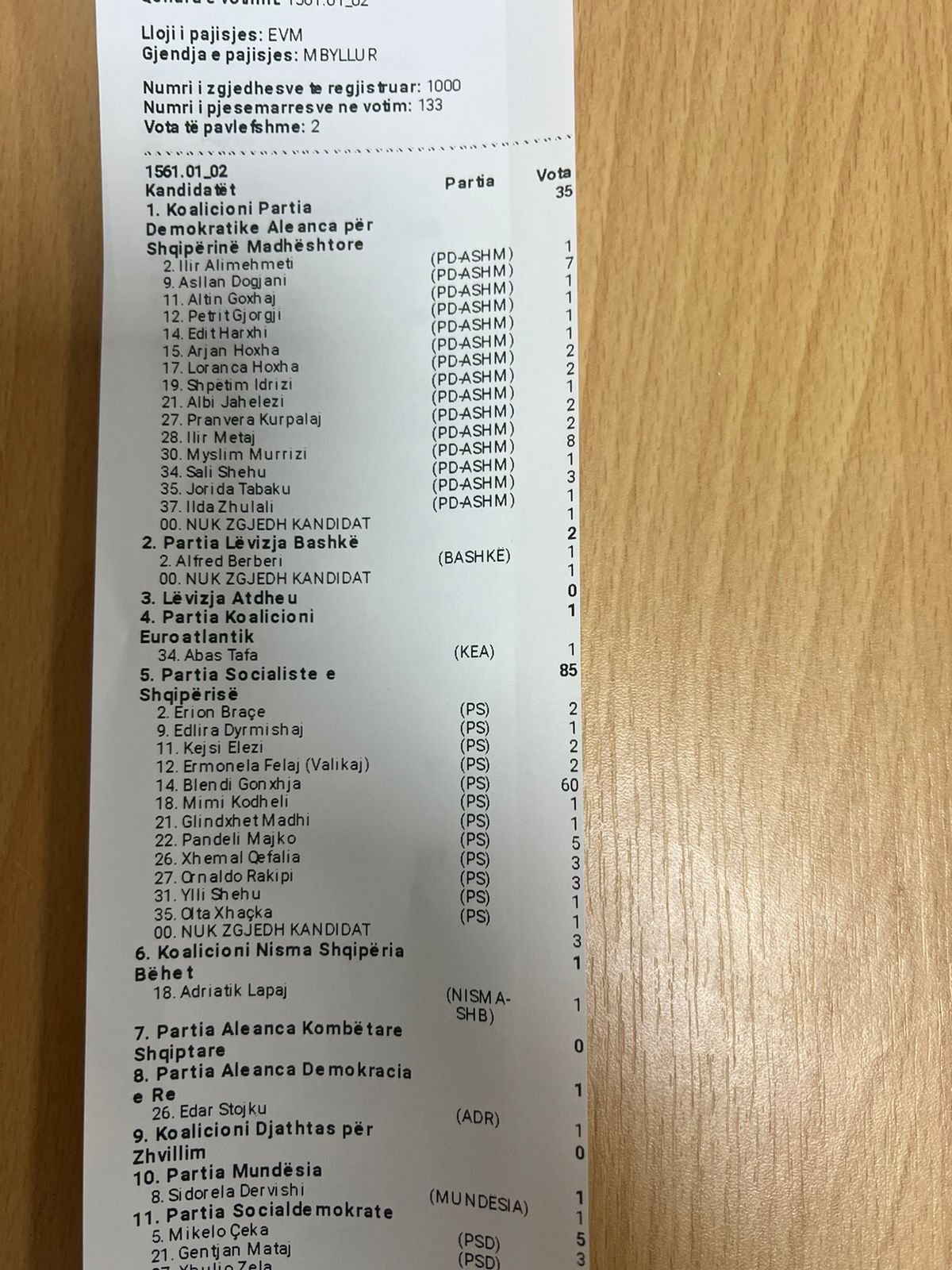 Ndërsa Partia Socialiste ka marrë 501 vota.