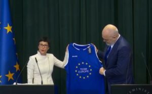 “Urime Edi Rama. Pres me padurim vazhdimin e bashkëpunimit tonë të mirë në ndjekjen e reformave të Shqipërisë për anëtarësimin në BE. Momenti për zgjerimin e Bashkimit Europian është real – le ta shfrytëzojmë së bashku!”, shkruan komisionerja.