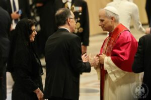 Në këtë ceremoni të rëndësishme, Presidenti ishte i shoqëruar nga Ministri për Evropën dhe Punët e Jashtme, Igli Hasani, si dhe Ambasadorja e Shqipërisë pranë Selisë së Shenjtë, Majlinda Frangaj.