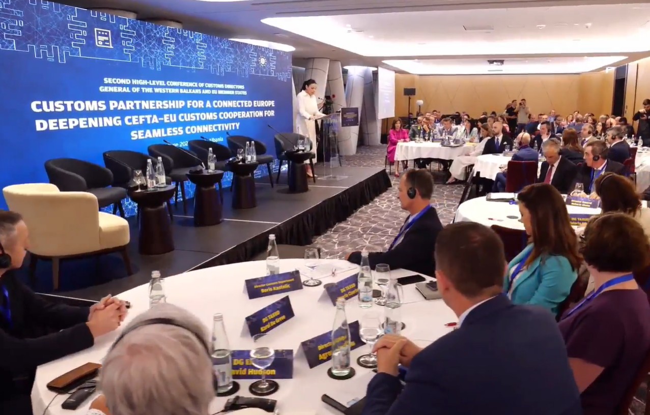 Sfidat për përmirësimin e legjislacionit, përmirësimi i infrastrukturës dhe modernizimi i pikave doganore në harmonizim me standardet e BE-së dhe rritja e partneritetit me projekte konkrete që do të nisin zbatimin ishin tematikat kryesore që u diskuan sot mes drejtuesve të Doganave të Ballkanit Perëndimor të pranishëm në punimet e Konferencës së Dytë të Nivelit të Lartë “Partneriteti Doganor për një Europë të Lidhur – Thellimi i Bashkëpunimit Doganor CEFTA-BE për lidhje të Pandërprerë”.