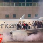 Pamjet gjithashtu treguan mbeturina në flakë, me tym të zi të trashë që ngrihej në qiell pranë aeroportit.