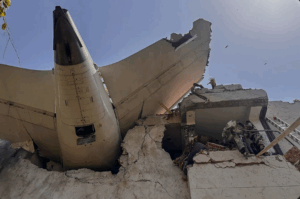 Pamjet nga vendi i ngjarjes tregojnë pjesë të avionit të ngulitura në një ndërtesë banimi, ndërsa zjarrfikësit përpiqeshin të vinin nën kontroll flakët.