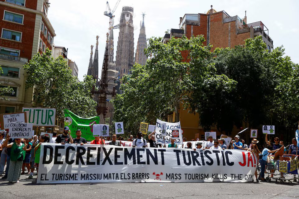 Nën ombrellën e aleancës SET – Sud d’Europa contra la Turistització, ose në gjuhën katalanase për “Evropa Jugore kundër Turizmit të Tepërt” – protestuesit bashkuan forcat me grupe në Portugali dhe Itali, duke argumentuar se turizmi i pakontrolluar po rritte çmimet e banesave dhe po i detyronte njerëzit të largoheshin nga lagjet e tyre. Barcelona, ​​një qytet me 1.6 milionë banorë, tërhoqi 26 milionë turistë vitin e kaluar, Reuters.