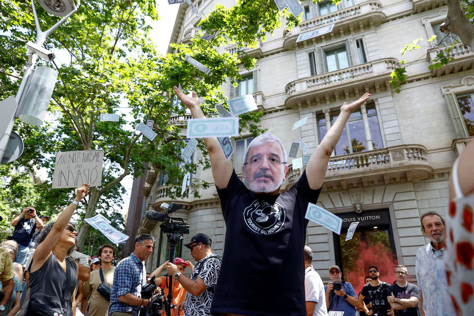 “Pushimet tuaja, janë mjerimi im”, brohoritën protestuesit në rrugët e Barcelonës, ndërsa mbanin lart pankarta me slogane të tilla si “turizmi masiv vret qytetin” dhe “lakmia e tyre na sjell rrënim”.