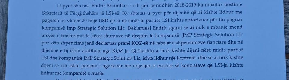 Palaçoja në shërbim të regjimit, xhepisti Endrit Braimllari, firmëtari i lobimeve për LSI në periudhën 2018-2019, sipas vetë dokumentit zyrtar të SPAK, vazhdon me paturpësi shpifjet e pacipa, sikur lobimet janë kryer vetëm në kohën kur Z. Ilir Meta ka qenë kryetar partie.