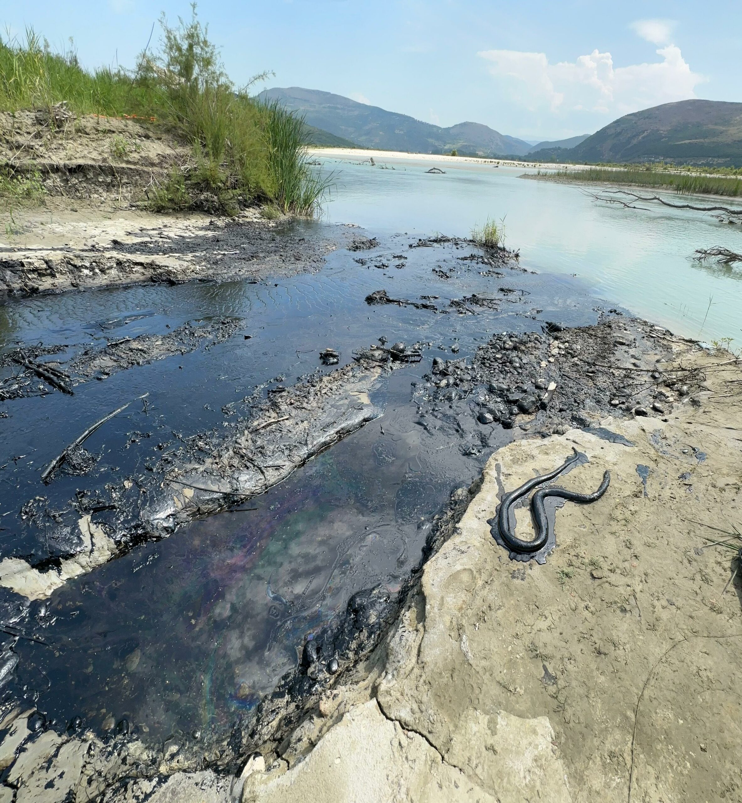 Organizata “EcoAlbania” ka ndarë këto pamje të ndotjes skandaloze në të cilat dallohet se nafta derdhet në lumin e Vjosës, aq sa ka shkaktuar edhe ndotjen e gjallesave. Siç shihet edhe në pamje, një gjarpër ka ngordhur për shkak të ndotjes nga nafta.
