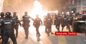 Policia serbe është përplasur me një turmë të madhe protestuesish kundër qeverisë në kryeqytetin Beograd, ku dhjetëra mijëra qytetarë kërkuan zgjedhje të parakohshme dhe fundin e sundimit 12-vjeçar të presidentit Aleksandar Vuçiç.