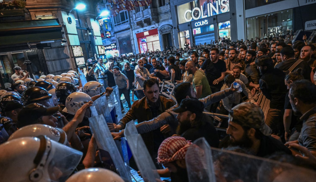 Pasi doli lajmi për fletarrestimet, dhjetëra protestues të zemëruar sulmuan një kafene që shpesh frekuentohet nga punëtorët e revistës LeMan në qendër të Stambollit, duke nxitur një përleshje me policinë.