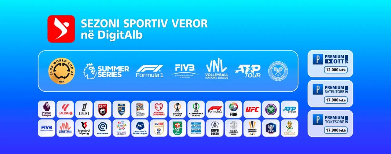 Për adhuruesit e sportit dhe për ata që kërkojnë një eksperiencë të plotë televizive, abonimi 12-mujor në paketën Premium Tokësore kushton vetëm 17,900 lekë, dhe si dhuratë, përfitoni të gjitha eventet sportive verore, pa asnjë kosto shtesë. Nga Botërori i Klubeve, Premier League Summer, Formula 1, Wimbledon, te Kualifikueset Europiane të Klubeve Shqiptare dhe Volleyball Nations League, të gjitha, live dhe ekskluzivisht në DigitAlb. E për ata që duan të mbajnë të bashkuar gjithë familjen përreth ekranit, paketa Familjare Tokësore është zgjidhja perfekte me vetëm 8,900 lekë për një vit të tërë abonimi.