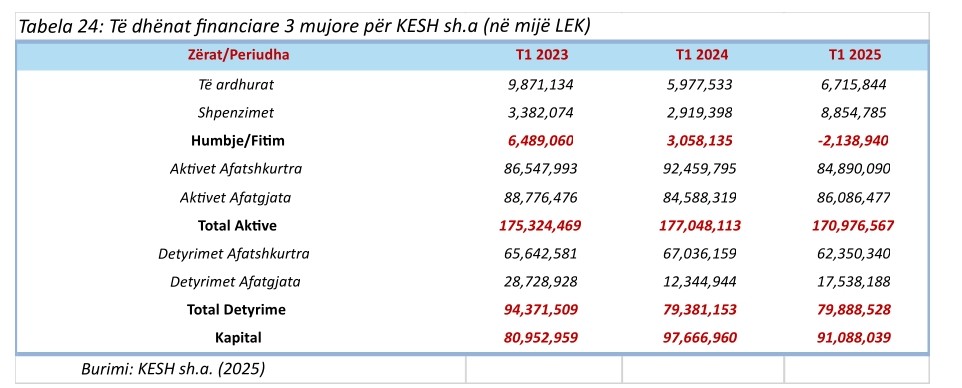 Të ardhurat e KESH pësuan rritje vjetore me 12 për qind në tremujorin e parë 2025 duke arritur në 6.7 miliardë lekë, por shpenzimet pësuan rritje të fortë me rreth 200 % si rrjedhoje e shpenzimeve më të larta për blerjen e energjie.