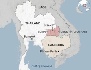 Autoritetet tajlandeze kanë shpallur ligjin ushtarak në tetë distrikte përgjatë kufirit me Kamboxhian, ndërsa tensionet mbeten të larta dhe të dyja palët akuzojnë njëra-tjetrën për nisjen e dhunës që nga e enjtja.