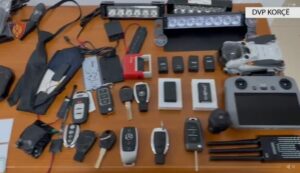 Gjatë kontrolleve të ushtruara në disa ambiente, Policia gjeti dhe sekuestroi një sërë pajisjesh dhe provash materiale, përfshirë: uniforma të ngjashme me ato të Policisë, pajisje GPS, kamera dhe mjete regjistrimi të fshehta, targa automjetesh, USB, karta memorie, laptopë, dronë, si dhe kontrata për shitblerje apo përdorim të mjeteve të ndryshme. Po ashtu, në banesën e njërit prej të shpallurve në kërkim u zbulua një ambient i përshtatur për ndërhyrje në automjete.