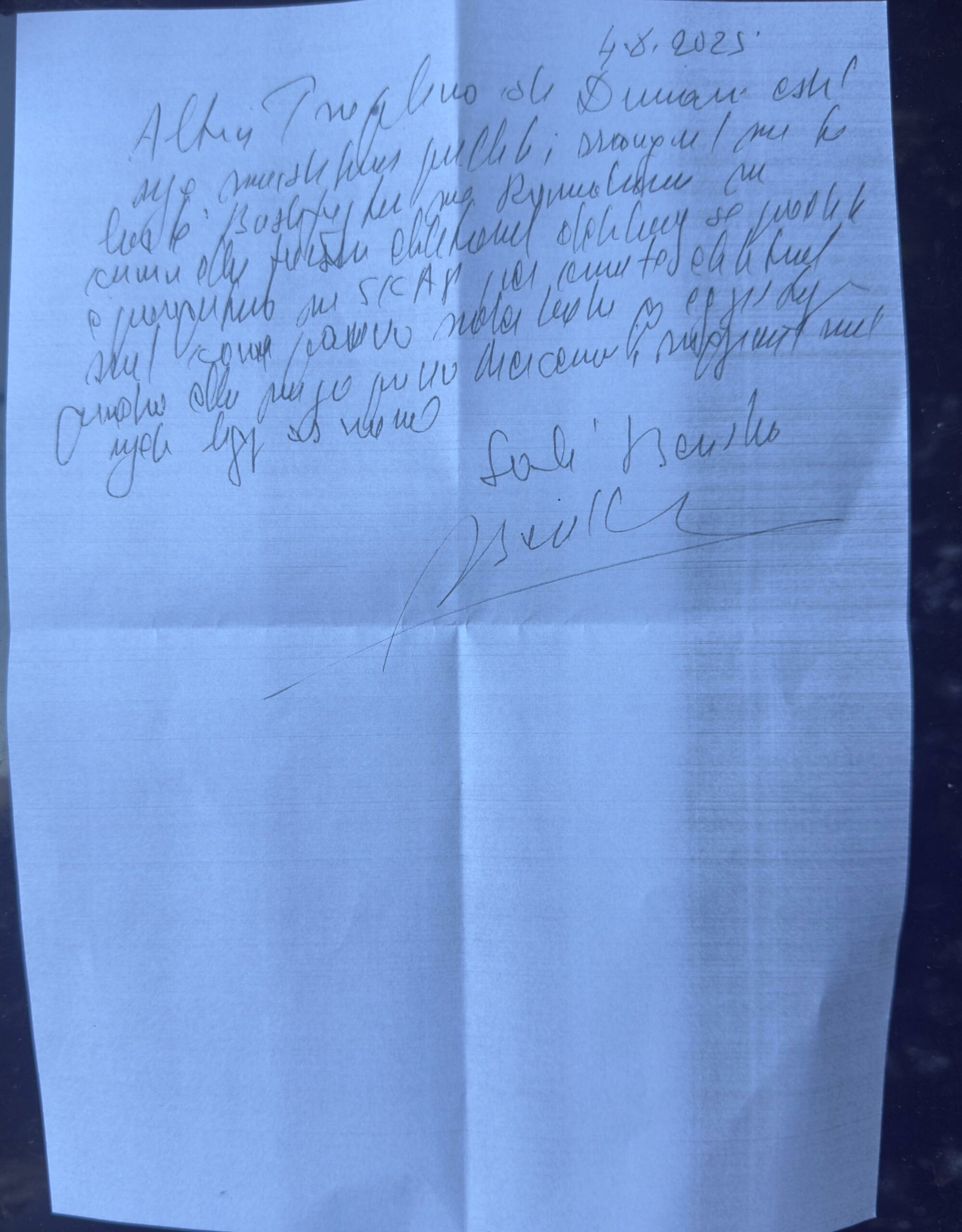 “Unë lashë këtë shënim Altin Treoplini allias Dumani është një mashtrues publik i rangut më të lartë, i njëjtë me Ramaduron. Deklaroj se paditë e sjella në Skap për krime elektorale pati amoralitetin e plotë të mashtrojë shqiptarët se këto padi nuk kishin prova.