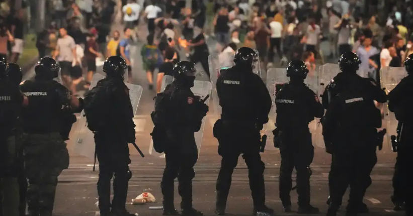 Të paktën pesë oficerë policie u plagosën të enjten në mbrëmje dhe 14 protestues u arrestuan, tha ministria e brendshme e Serbisë, sipas agjencisë së lajmeve AFP.