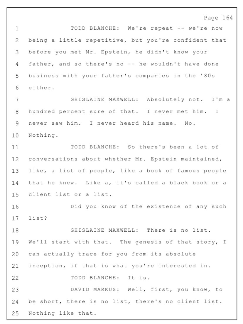 Maxëell mohoi se Epstein kishte një “listë klientësh” dhe tha se ai nuk mbante një rezervë materialesh shantazhi kundër bashkëpunëtorëve të shquar.