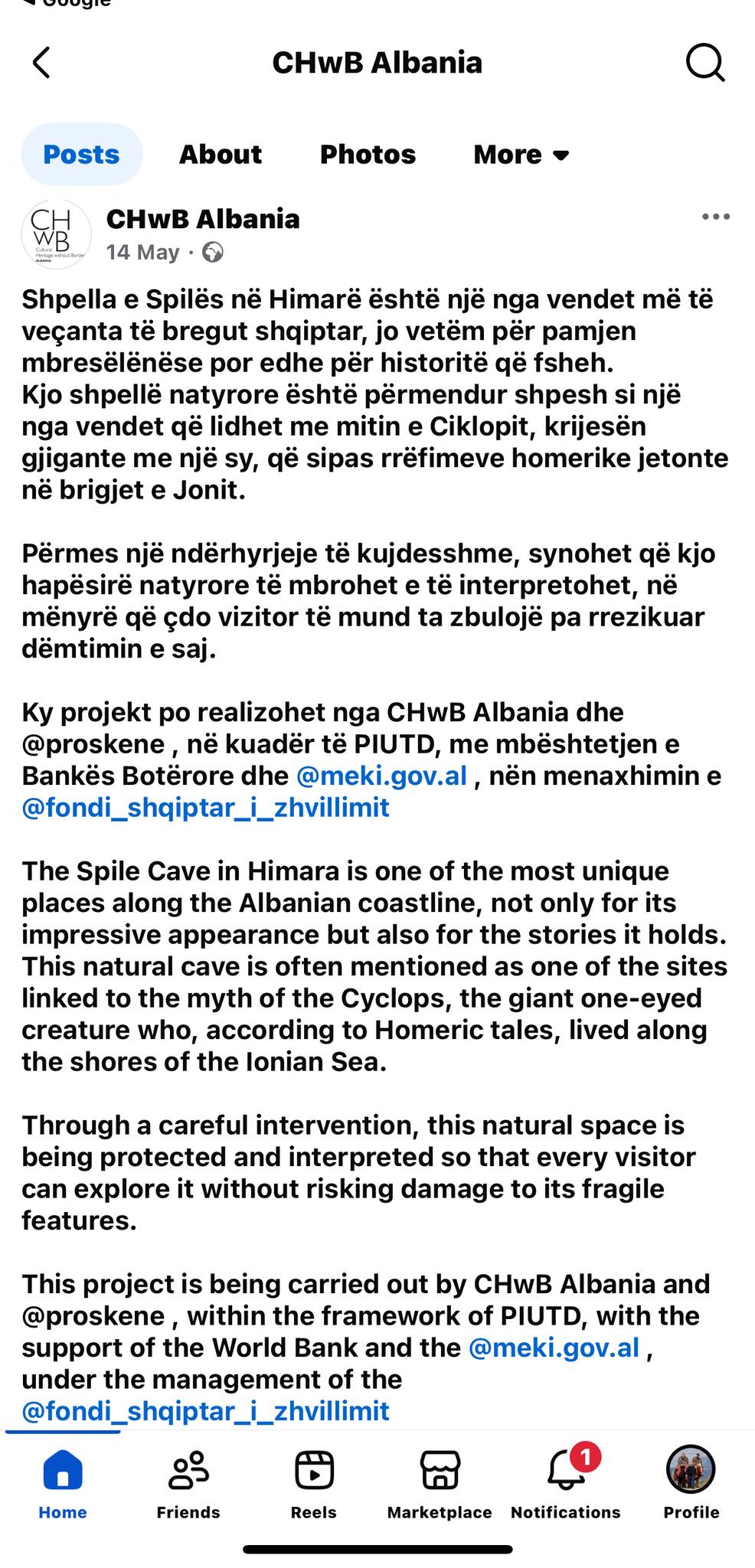 Ndoshta për shkak të debatit mediatik mbi çështjen e Shpellës së Spilës në Himarë, dje më erdhi një mesazh nga një prej punonjësve zyrtarë që janë përfshirë në këtë projekt. Ai argumentonte se, në fakt, ky projekt ishte përgatitur nga një OJF me emrin CHëB Albania dhe i miratuar nga MEKI. Për këtë më dërgoi si projekt-propozimin me 6 fletë, si edhe vendimin e MEKI-t për miratimin e konceptit.
