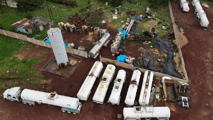 Pamje nga droni e një objekti sekret të magazinimit të sekuestruar gjatë një bastisjeje të kryer nga Zyra e Prokurorit të Përgjithshëm të Meksikës, korrik 2025 © Oscar Martinez/Reuters