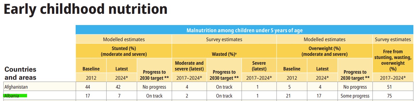 Në raport theksohet se Shqipëria ka bërë progres për të përmbushur objektivat e vitit 2030 për reduktimin e mbipeshës në fëmijëri.