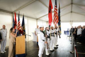 “Faleminderit të gjithëve që u bashkuan me ne për të festuar vizitën historike të USS Mount Whitney në Porto Romano javën e kaluar! Nga bisedat e rëndësishme me partnerët tanë në fushën e mbrojtjes për rolin e Shqipërisë në NATO, te interpretimet mbresëlënëse të Flagship, grupit të mirënjohur muzikor të Forcave Detare Amerikane në Europë dhe Afrikë – me pjesëmarrjen e muzikantëve shqiptarë Gjergj Kaçinari dhe Blerina Braka nga Orkestra e Forcave të Armatosura Shqiptare – pamë forcën e Aleancës së NATO-s dhe miqësisë mes kombeve tona. Së bashku lundrojmë”, thuhet në reagim.