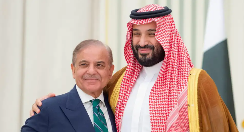 Princi i Kurorës i Arabisë Saudite, Mohammed bin Salman, dhe kryeministri i Pakistanit, Shehbaz Sharif, i cili po bën një vizitë shtetërore, u përqafuan pas nënshkrimit të marrëveshjes.