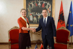 E Ngarkuara me Punë e Ambasadës së SHBA në Tiranë, Nancy VanHorn, zhvilloi sot një takim me kryetarin e Parlamentit, Niko Peleshi.