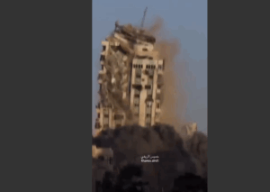 Forcat e Mbrojtjes së Izraelit (IDF) goditën të dielën në mbrëmje kullën 16-katëshe Mecca në lagjen Tal al-Hawa të qytetit të Gazës, duke deklaruar se ndërtesa përdorej nga Hamasi.