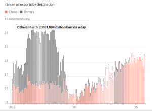 Irani eksportoi 43 miliardë dollarë, kryesisht naftë të papërpunuar, vitin e kaluar, sipas vlerësimeve të Administratës Amerikane të Informacionit për Energjinë. Zyrtarët perëndimorë vlerësojnë se rreth 90% e këtyre eksporteve shkojnë në Kinë.