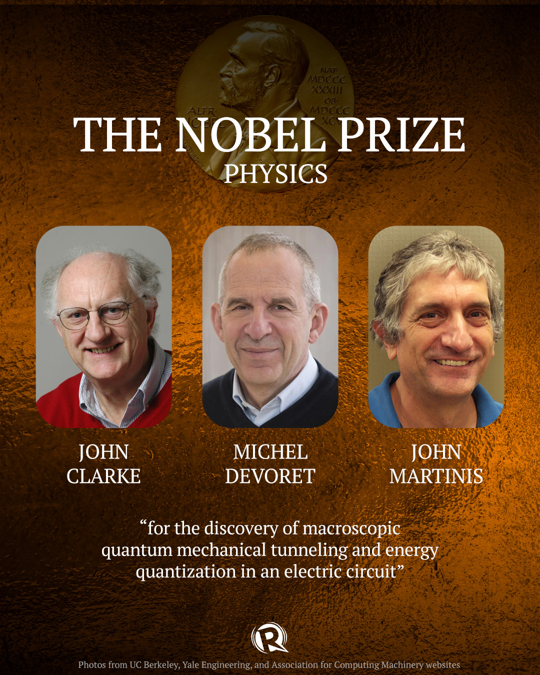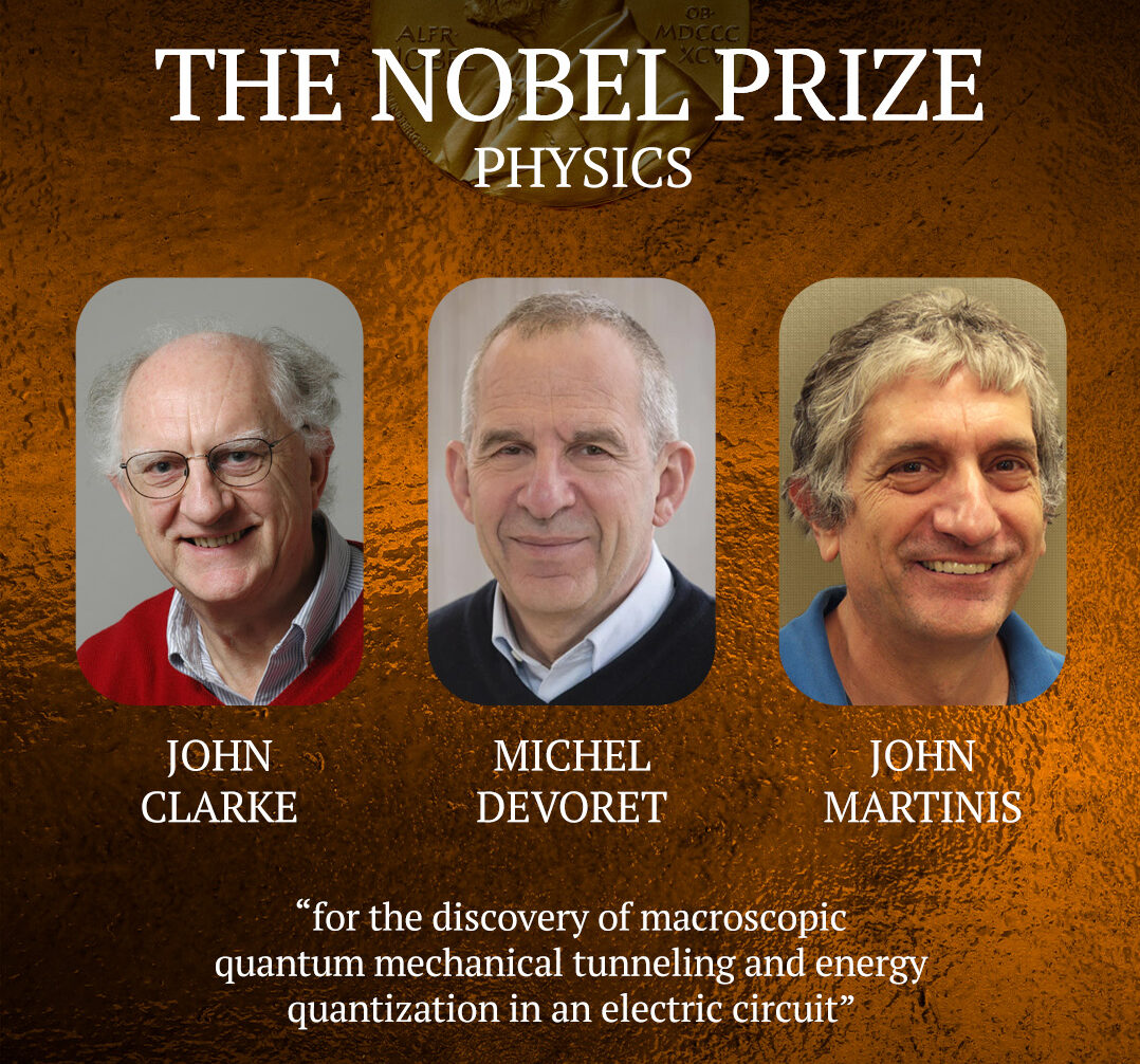 Fituesit janë John Clarke (Universiteti i Kalifornisë, Berkeley), Michel H. Devoret (Universiteti i Yale, New Haven dhe Universiteti i Kalifornisë, Santa Barbara) dhe John M. Martinis (Universiteti i Kalifornisë, Santa Barbara).