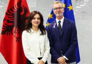 Ambasadori i BE në Tiranë, Silvio Gonzato ka zhvilluar një takim me ministren për Europën dhe Punët e Jashtme, Elisa Spiropali.