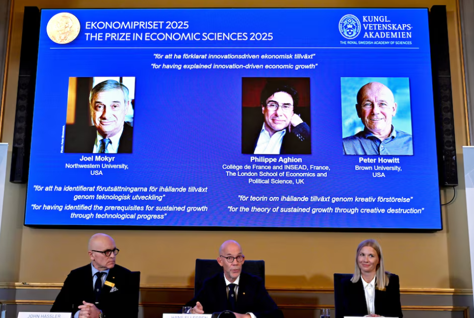 Joel Mokyr, Philippe Aghion dhe Peter Howitt fituan çmimin Nobel për Ekonomi 2025 të hënën për punën e tyre mbi mënyrën se si inovacioni dhe forcat e “shkatërrimit krijues” mund të nxisin rritjen ekonomike dhe të rrisin standardet e jetesës në mbarë botën.