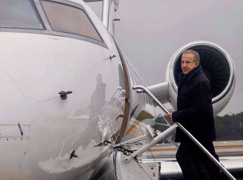 Biznesmeni i shquar Behgjet Pacolli duke sfiluar këndshëm te avioni privat