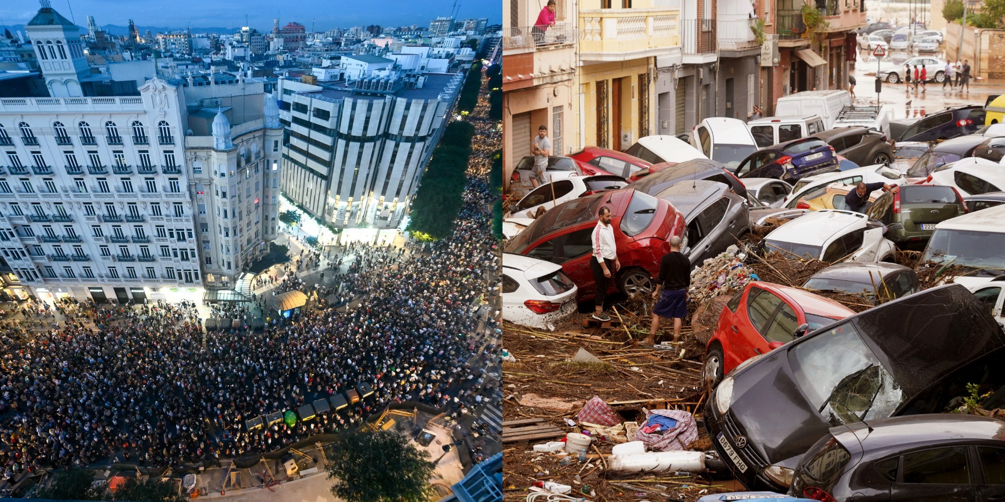 Më shumë se 50,000 njerëz dolën në rrugët e qytetit lindor spanjoll të Valencias të shtunën për të shënuar përvjetorin e parë të përmbytjeve vdekjeprurëse të vitit të kaluar dhe për të denoncuar menaxhimin e fatkeqësisë nga autoritetet.