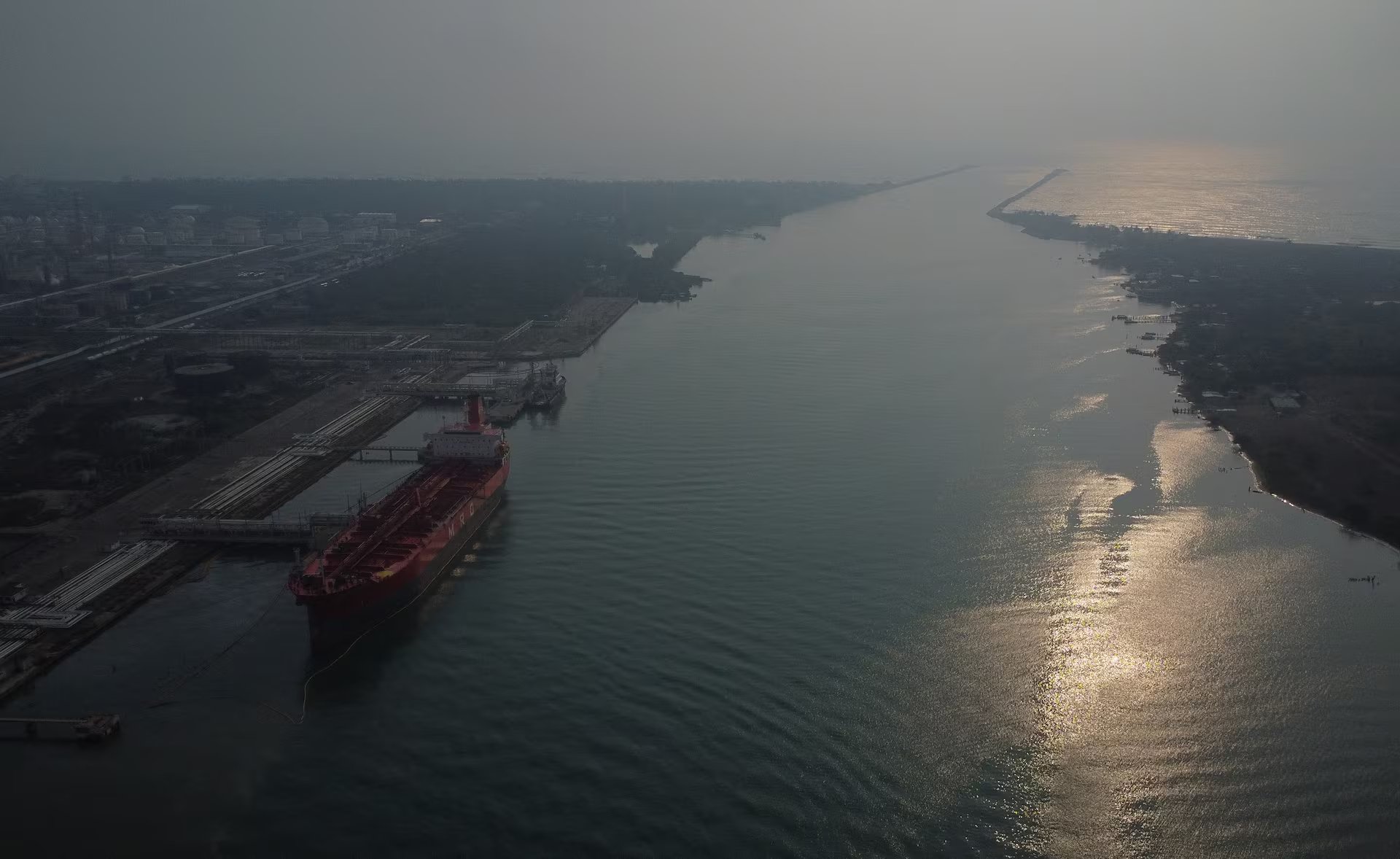 Një cisternë nafte është ankoruar në një terminal detar të Pemex në shtetin Tamaulipas të Meksikës më 28 Maj 2025