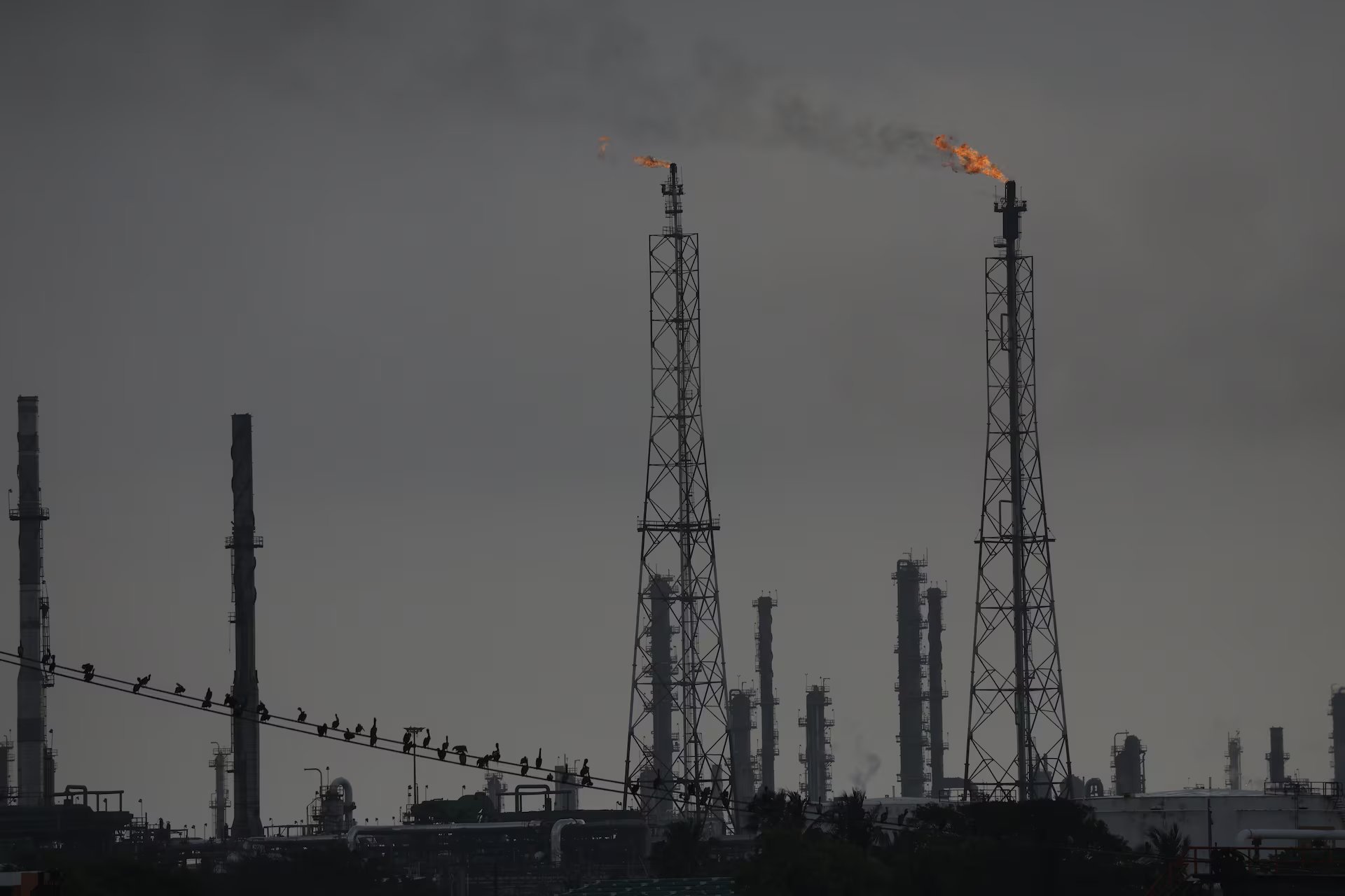 Flakë në një rafineri të gjigantit shtetëror të naftës Pemex të Meksikës pranë Portit të Tampico më 28 maj 2025. Kompania është një objektiv për kartelet që vjedhin karburant dhe naftë të papërpunuar