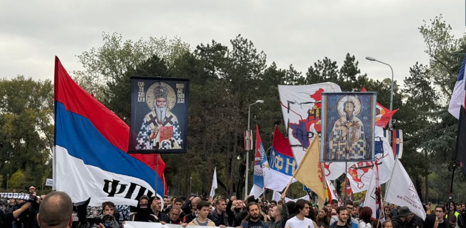 “Për mbrojtjen” e serbëve në protestën e 11 tetorit u bashkuan edhe përfaqësues të grupeve të ekstremit të djathtë, disa prej të cilave janë ndaluar nga Gjykata Kushtetuese e Serbisë.