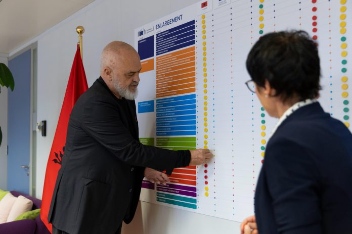 Sipas njoftimeve zyrtare, Shqipëria ka hequr tashmë të gjitha pikat e kuqe nga i ashtuquajturi “Muri i Zgjerimit” në Bruksel. Komisionerja për Zgjerimin, Marta Kos, e cila në shtator i prezantoi kryeministrit Edi Rama progresin e vendit në këtë proces, e vlerësoi Shqipërinë si shembull të përparimit të shpejtë në integrimet evropiane. “Kur erdha në dhjetor, thuajse gjithçka ishte me të kuqe. Shqipëria ka ecur kaq shpejt sa sot pjesa më e madhe është gjelbëruar”, tha Kos.