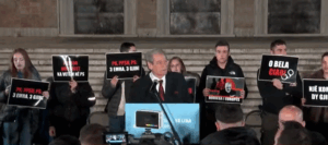 “Liria është si një lumë, të cilin me asnjë lloj përpjekje nuk mund ta ndalësh, nuk mund ta përthash. Po guxove ta bllokosh, ajo do të çajë një kanal. Pikërisht kjo është platforma parlamentaro-qytetare që ne inaugurojmë sot para pallatit të krimit. Para pallatit të krimit shtetëror, ndaj shtetit shqiptar, zëvendësimit të tij me narkoshtetin. Para pallatit të krimit njerëzor ndaj shqiptarëve, që me qëndrimet e tij përzuri nga Shqipëria në vitet e qeverisjes së tij më shumë se çdo pushtues i egër në tërë historinë kombëtare. Para pallatit që në një krim monstruoz ndaj shqiptarëve i zvogëloi ata dhe i ktheu 100 vite mbrapa. Para pallatit që ka brenda diktatorin, sulltanin dhe sulltaneshën, Edvinin dhe Lubinë, të cilët me vjedhjet, plaçkitjet e tyre kanë mbjellë skamje në këtë vend si në asnjë vend tjetër të kontinentit. Përpjekjet e opozitës për zgjedhje dhe rotacion të pushtetit u përballën me tonelatat e eurove të drogës. U përballën me ushtrinë terroriste të patronazhistëve. Terroristë të votës. U përballën me të gjithë burimet financiare, njerëzore, logjistike, të gjithanshme të shtetit mafioz, të narkoshtetit vetëm e vetëm se rotacioni, largimi nga pushteti i tyre është frikë, tmerr nga krimet që kanë kryer.”