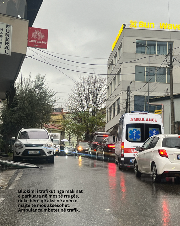 Ky është një problem i theksuar sidomos në rrugicat që shërbejnë si lidhje drejt blloqeve të banimit, të cilat në pjesën më të madhe nuk janë më të gjera se 5 metra. Në kushtet e trafikut të rritur, ky ngushtim shndërrohet në pengesë serioze edhe për mjetet e emergjencës.
