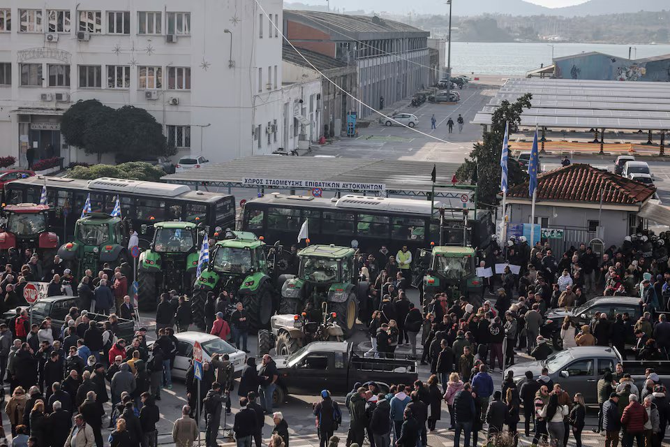 Dhjetëra fermerë u mblodhën në portin e Volosit si pjesë e një vale demonstrimesh në të gjithë vendin, duke protestuar kundër vonesave në pagesat e subvencioneve bujqësore dhe rritjes së vazhdueshme të kostove të prodhimit.
