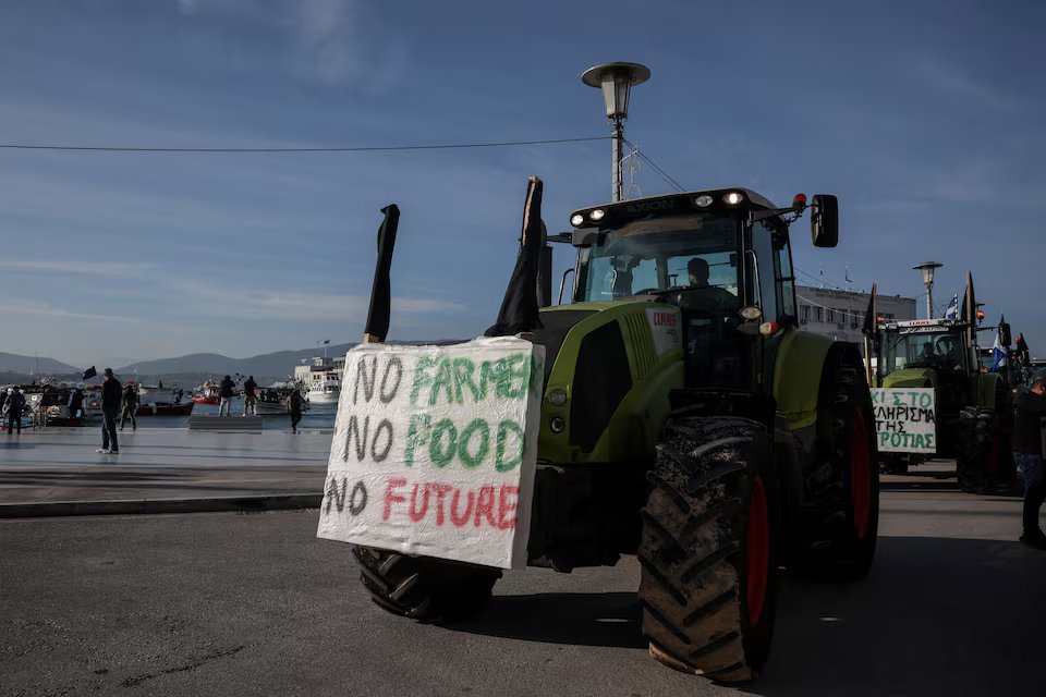 Fermerët nga rajoni bujqësor i Thesalisë, një nga zonat më të prekura të vendit, i drejtuan traktorët e tyre drejt qytetit të Volosit dhe i parkonin për disa orë jashtë portit. Rajoni i Thesalisë ishte goditur rëndë nga përmbytjet në vitin 2023, të cilat shkatërruan të mbjellat dhe blegtorinë. Policia ndërhyri duke bllokuar hyrjen në port për të parandaluar hyrjen e protestuesve në terminalet e pasagjerëve dhe të mallrave.
