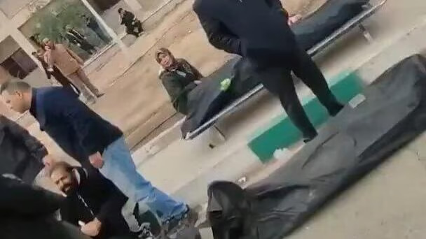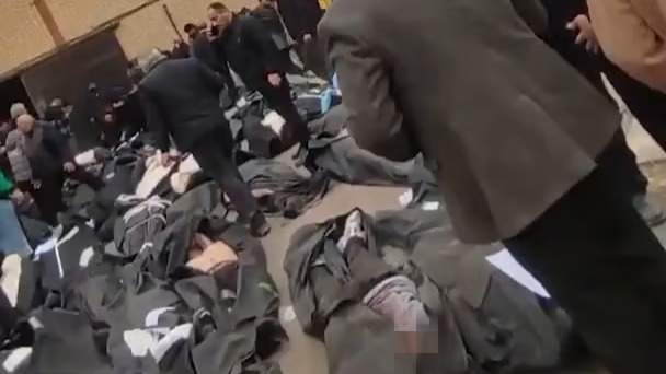 Në videot e qarkulluara, shihen rreshta të gjatë me qese trupash në oborret e instituteve, ndërsa në një prej ekraneve të identifikimit shfaqej numri “250”, gjë që sugjeron se vetëm në atë pikë mund të ndodhen qindra viktima.
