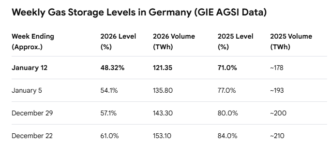 Sipas ekspertëve, shkaku kryesor i shterimit të përshpejtuar është moti më i ftohtë se zakonisht në fund të dhjetorit, i cili rriti ndjeshëm kërkesën për ngrohje. Sebastian Heinermann, drejtor menaxhues i Initiative Energispeicher, deklaroi se me një nivel mbushjeje nën 52%, depot e gazit ndodhen në një minimum historik, ndërsa Timm Kehler nga Shoqata e Industrisë së Gazit dhe Hidrogjenit konfirmoi se nivelet aktuale janë dukshëm nën mesataren afatgjatë.