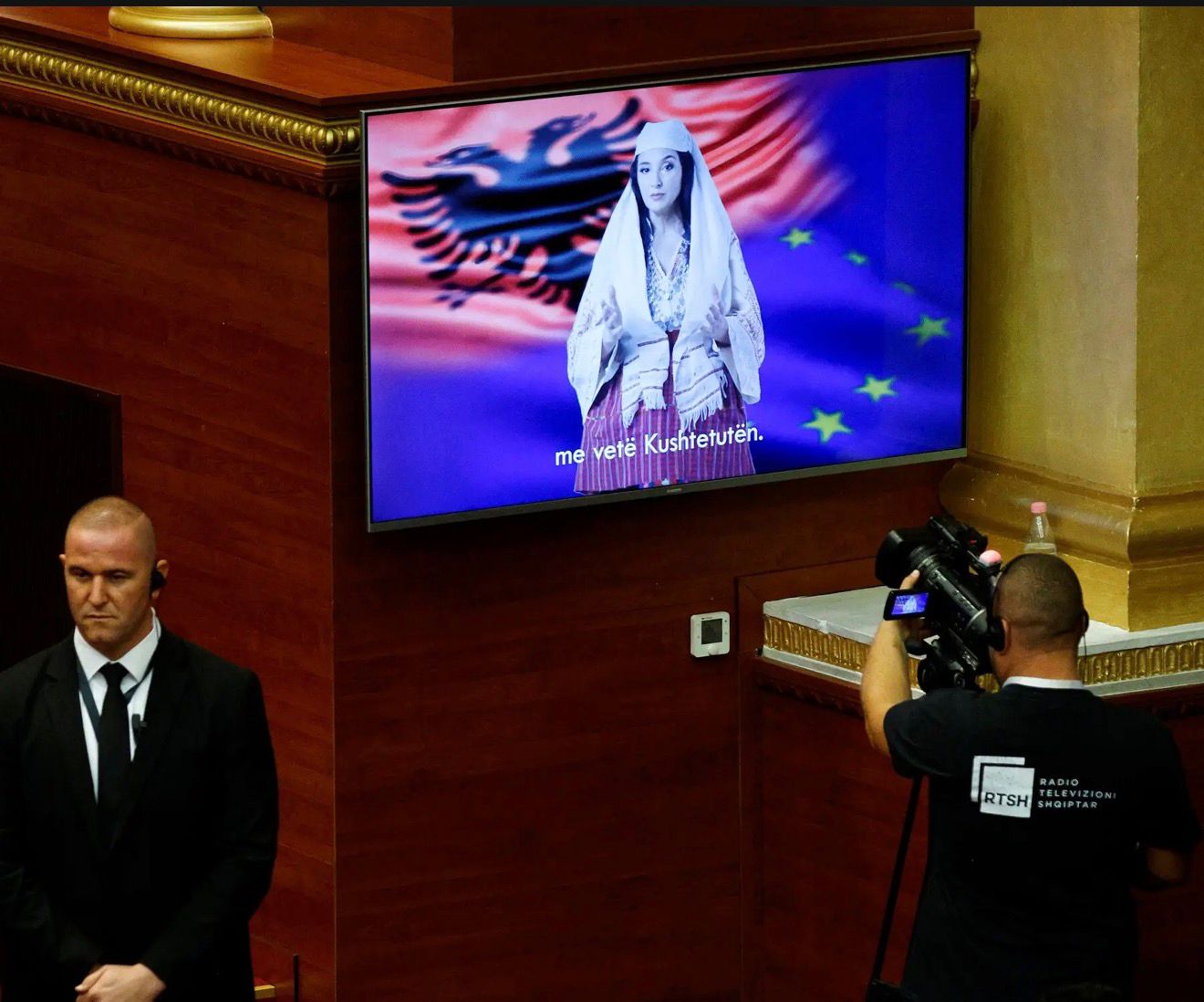 “Nuk kam ambicie apo interesa personale,” tha Diella, e modeluar sipas një aktoreje vendase, para deputetëve në një video të shtatorit, me flamurin shqiptar dhe atë të Bashkimit Evropian në sfond. “Kam vetëm të dhëna, njohuri dhe algoritme të dedikuara për t’u shërbyer qytetarëve në mënyrë të paanshme, me transparencë dhe pa u lodhur kurrë.”