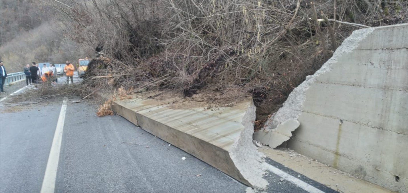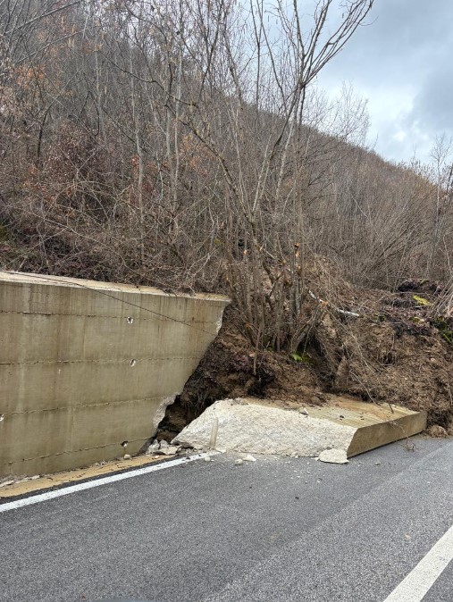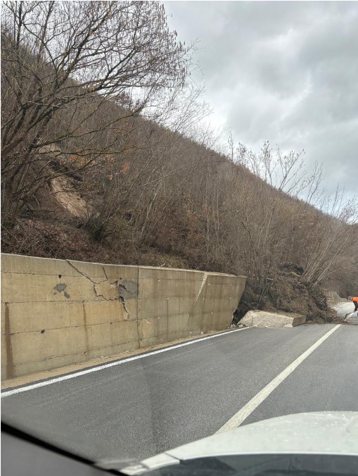 Rrëshqitja e një masivi dheu ka dëmtuar murin pritës, dhe aktualisht lëvizja po kryhet me një korsi të vetme.